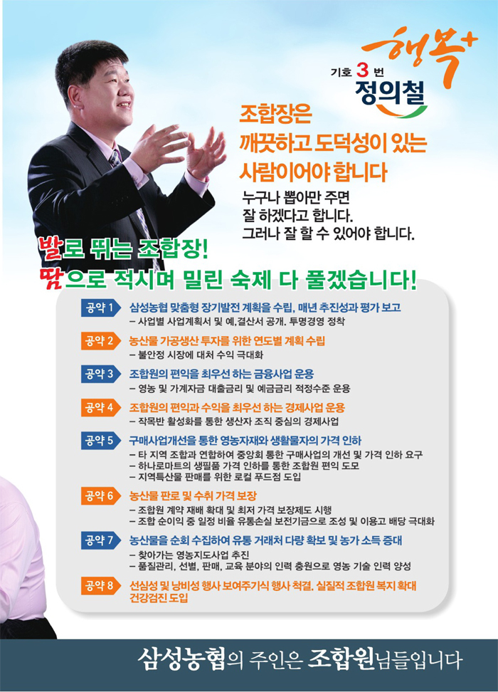 Á¤ÀÇö Á¶ÇÕÀå Èĺ¸ ¼±°ÅÈ«º¸¹° (»ï¼º³ó¾÷ Çùµ¿Á¶ÇÕ)